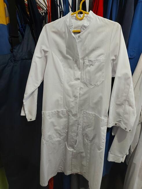 Biały fartuch z bawełny 100%, długi rękaw, nowy - 76 zł / szt Wrocław ul Sępa Szarzyńskiego 82 od pon do pt od 9 ...